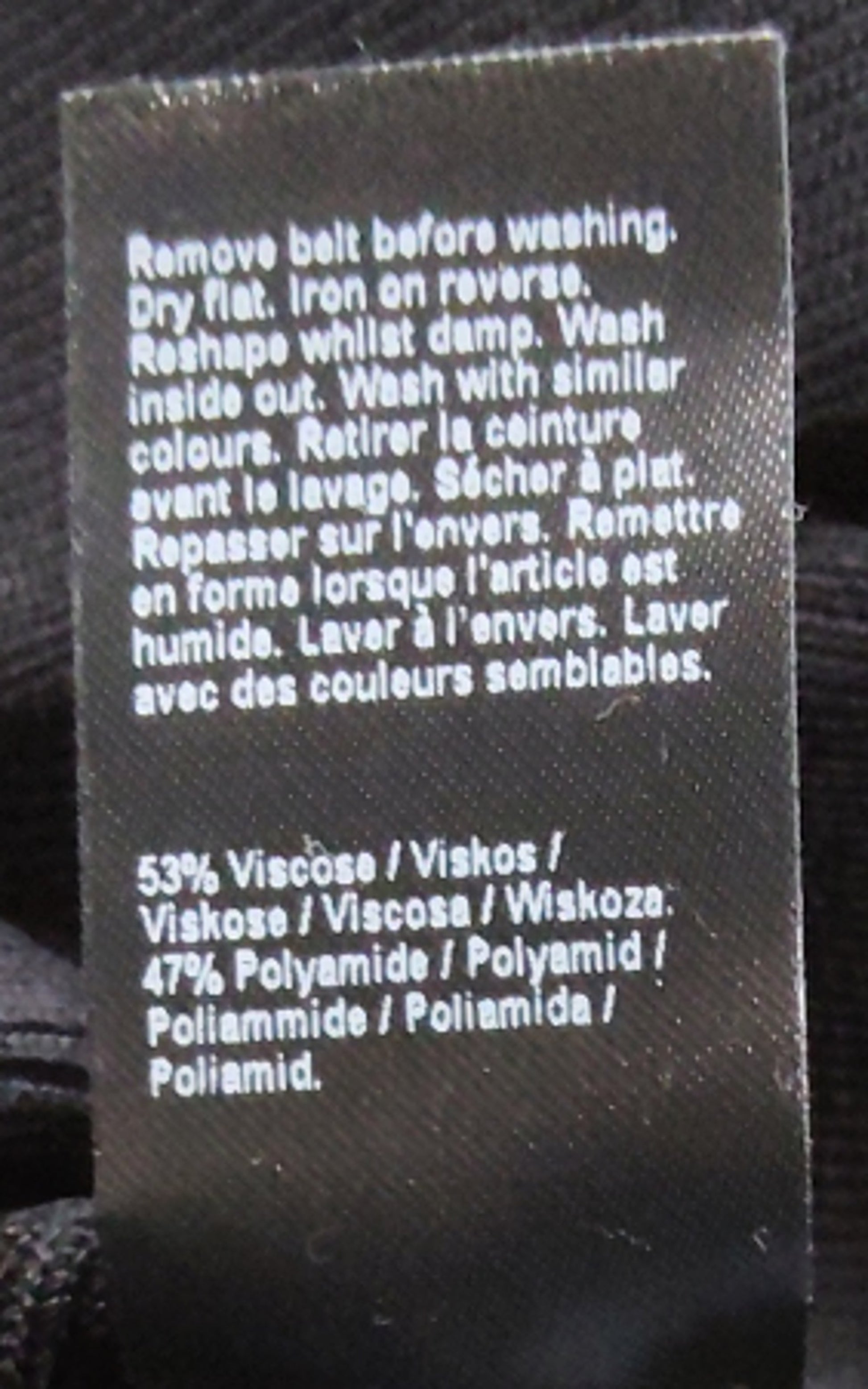 - Care Instructions: Remove belt before washing. Dry flat. Iron on reverse. Reshape whilst damp. Wash inside out with similar colours.