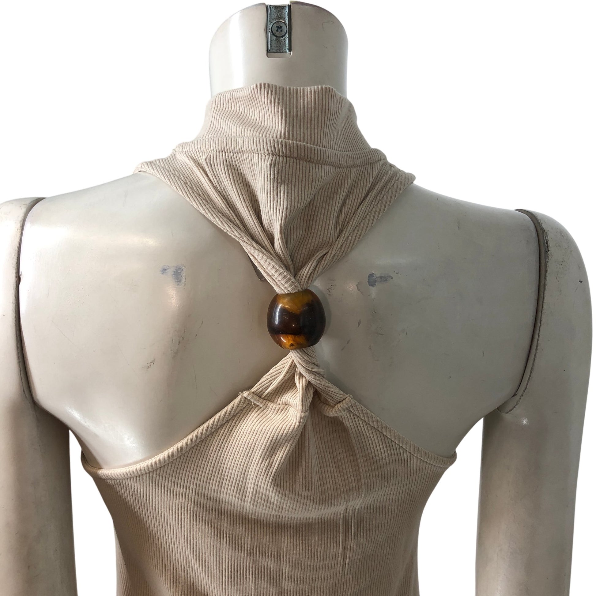 River Island Women's Cream Bodycon Dress UK M Sleeveless Ribbed Long