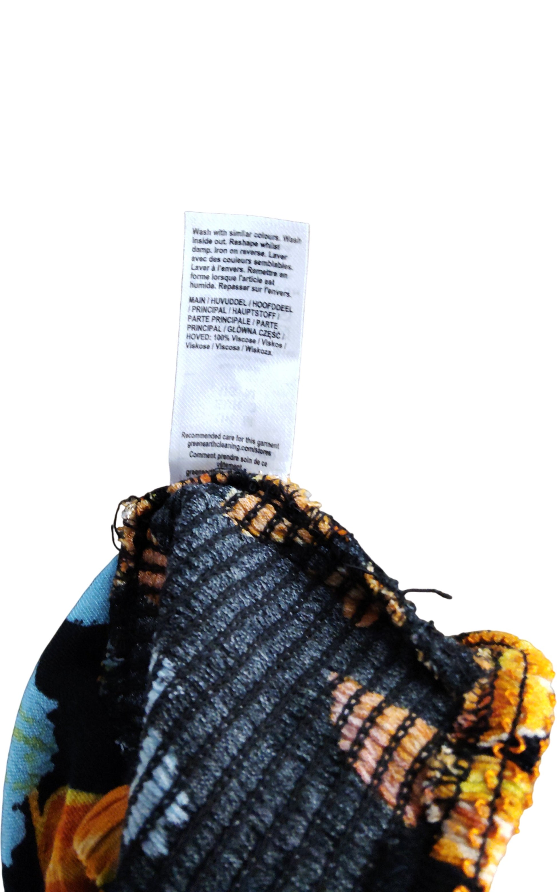 River Island Women's Floral Print Crop Top UK M Tie Straps Black Orange Beach
