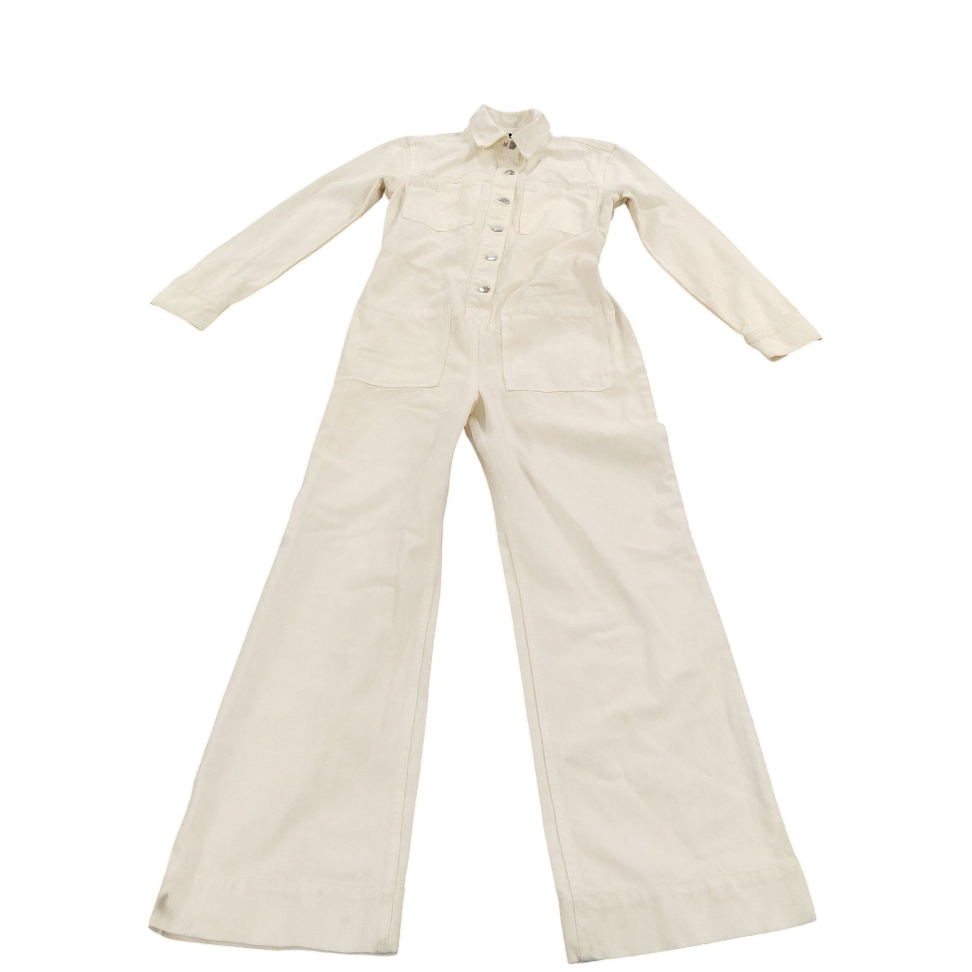 River Island Women's Jumpsuit Size 8 Cream Button Up Long Sleeve Casual