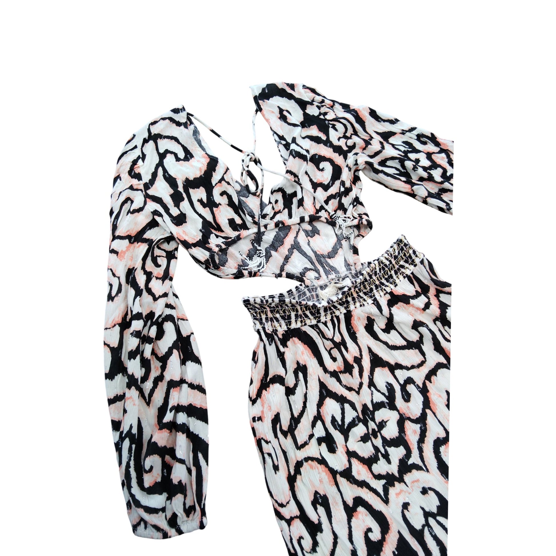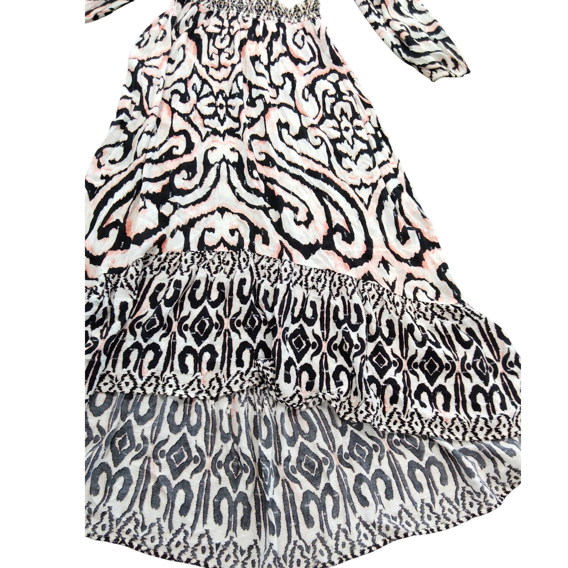River Island Women's Long Sleeve Maxi Dress UK S Black Pink Print Casual Wear