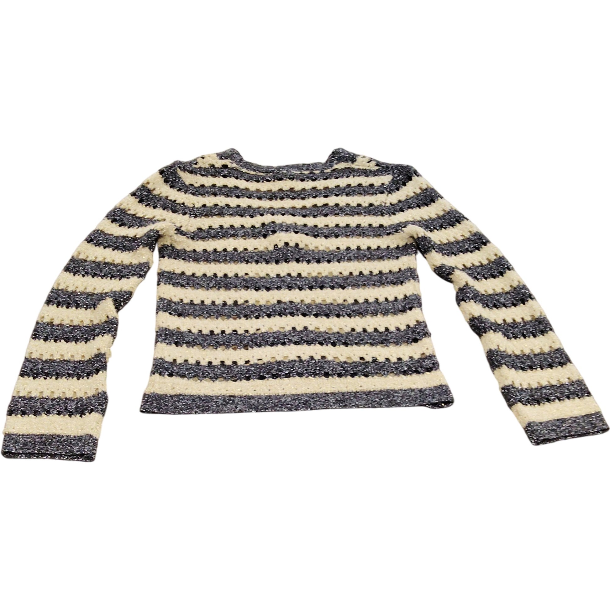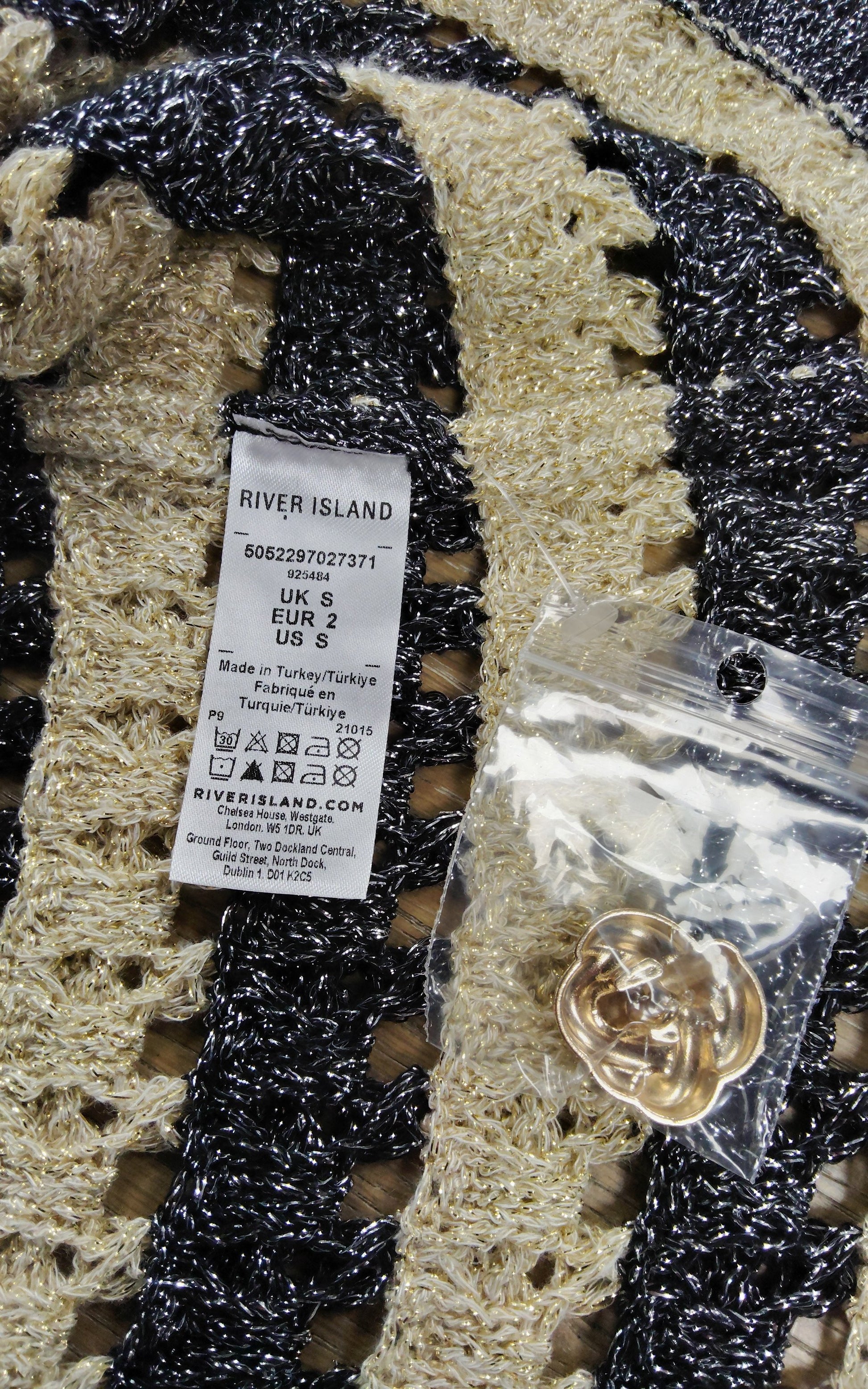 River Island Women's Size 8 Neck Cream Black Striped Cardigan