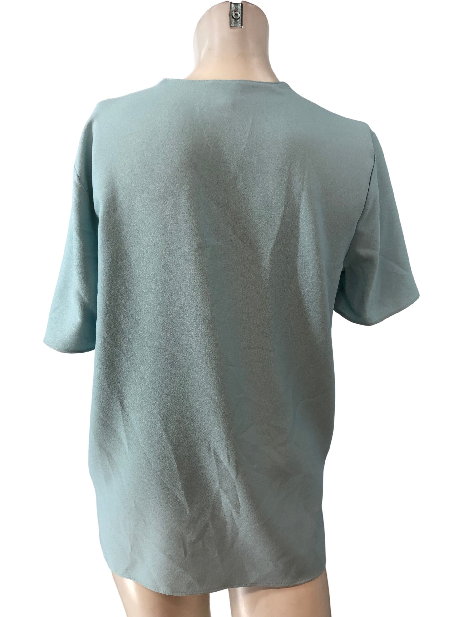 River Island Women's V Neck Blouse Size 10 Aqua Short Sleeve Polyester Top