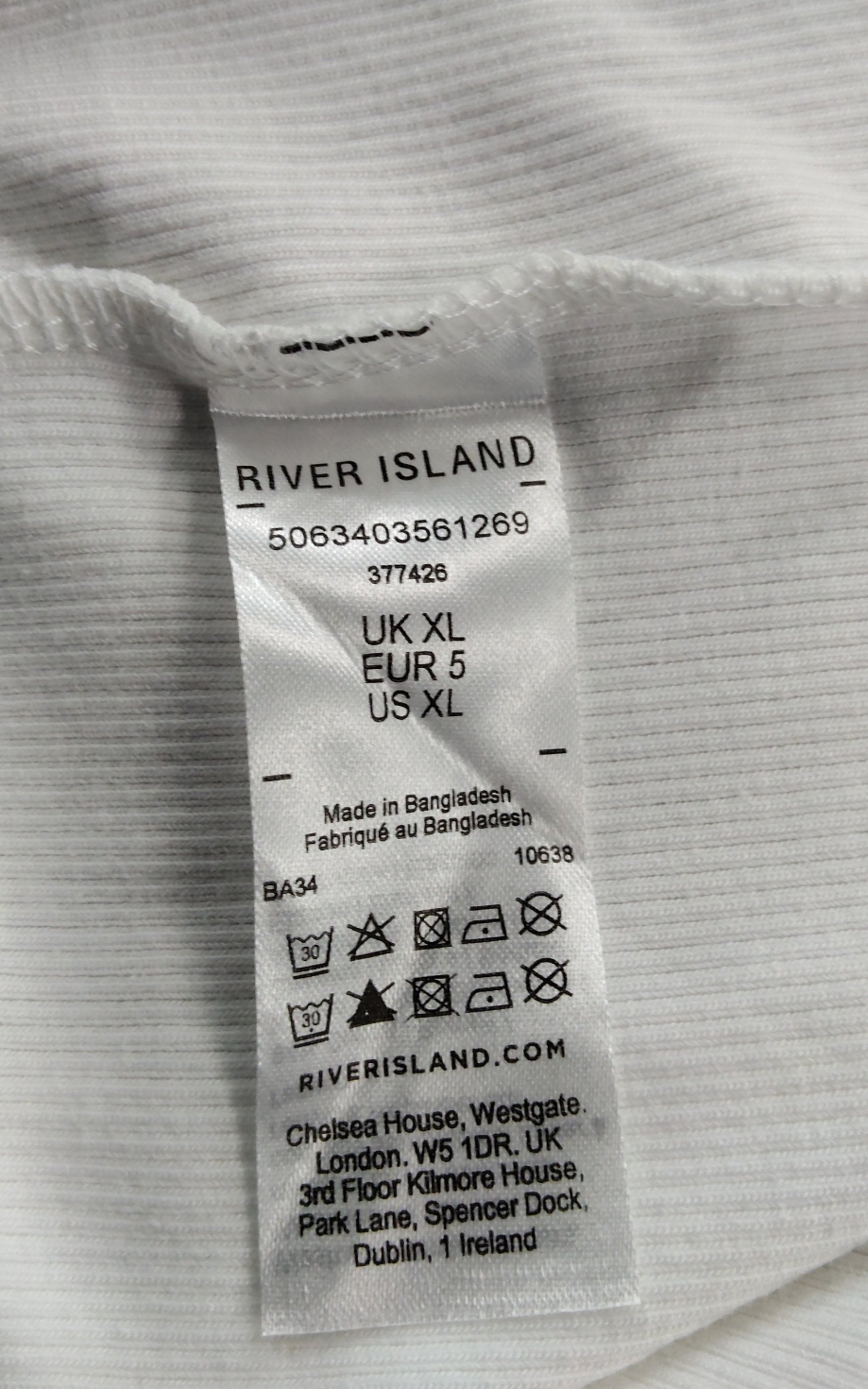 River Island Women's White Ribbed Tank Top UK XL Summer Casual Wear