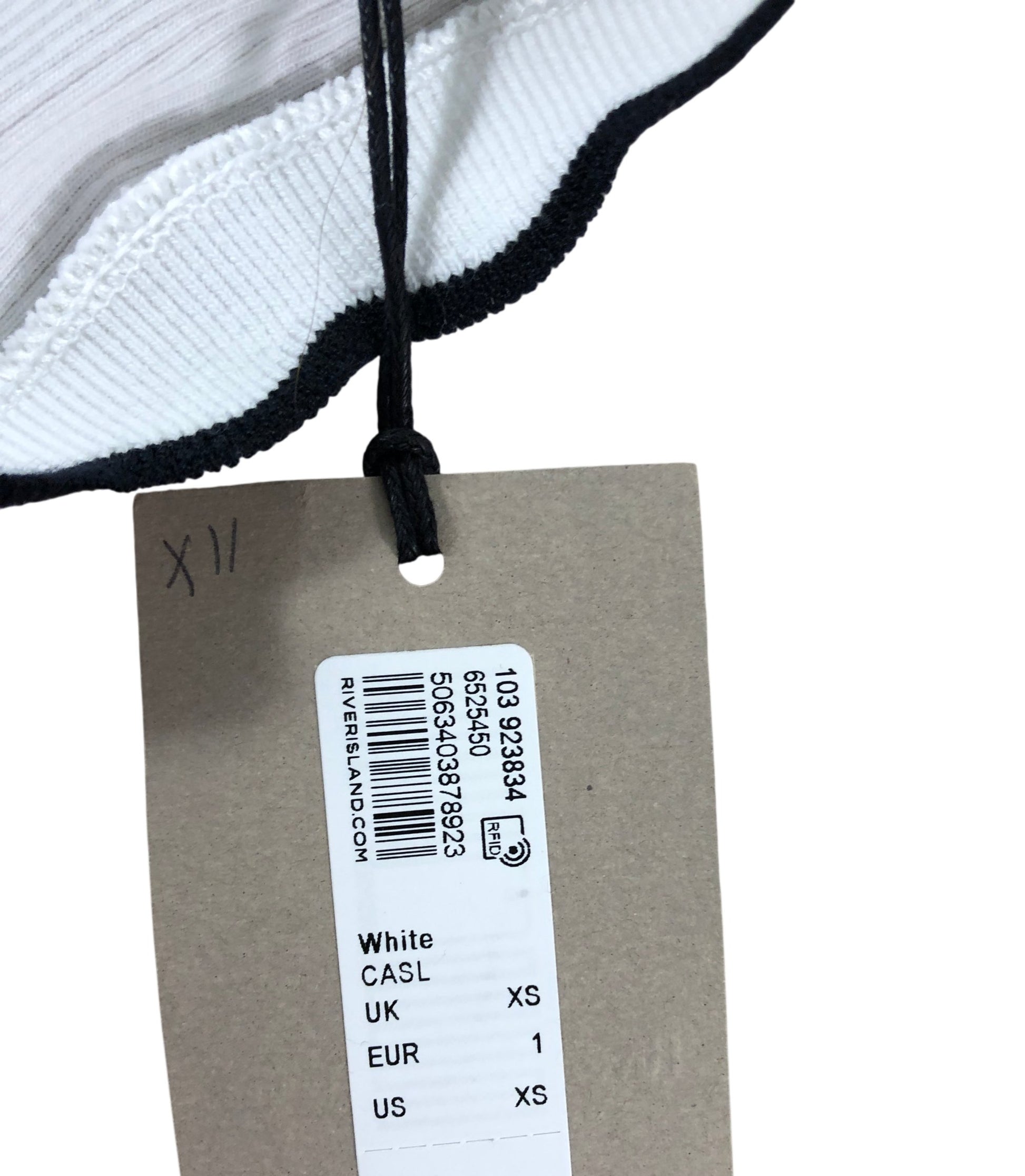 River Island Women's White Ribbed Tank Top XS Casual Style Black Trim