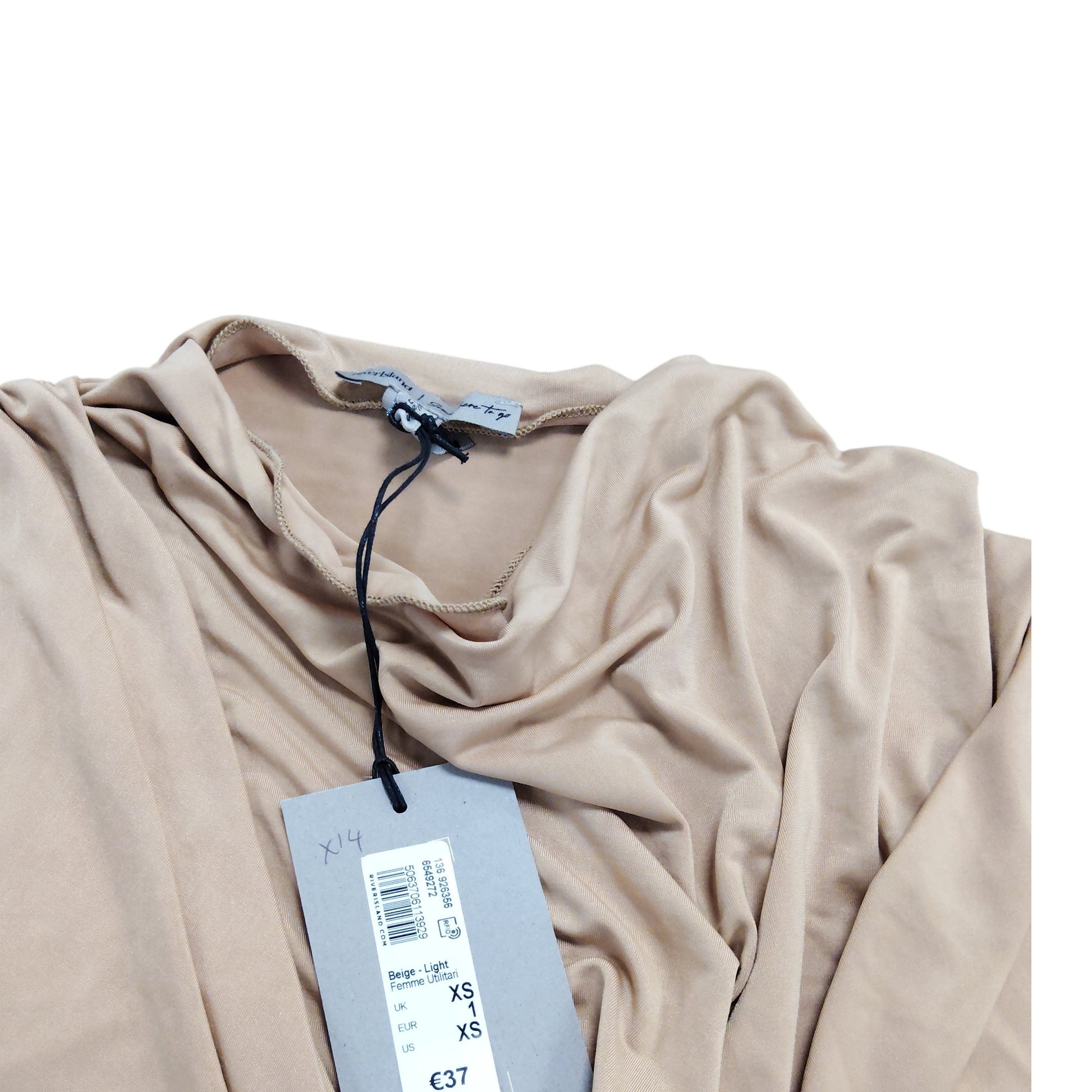 River Island Wrap Effect Top UKXS Women's Beige Draped Stretch Short Sleeve