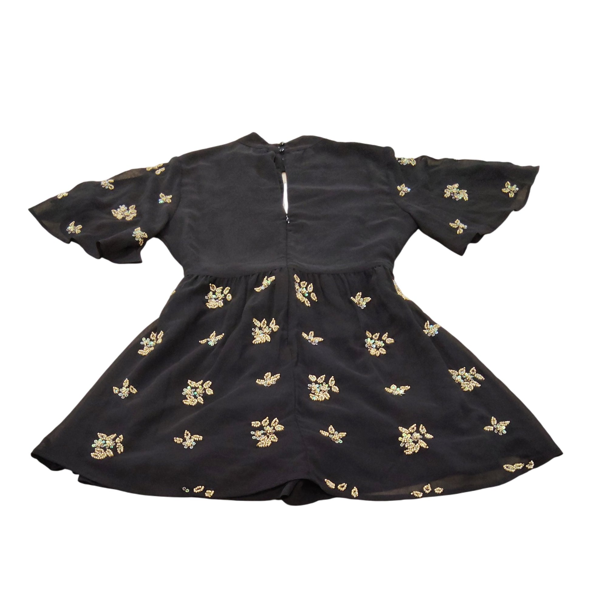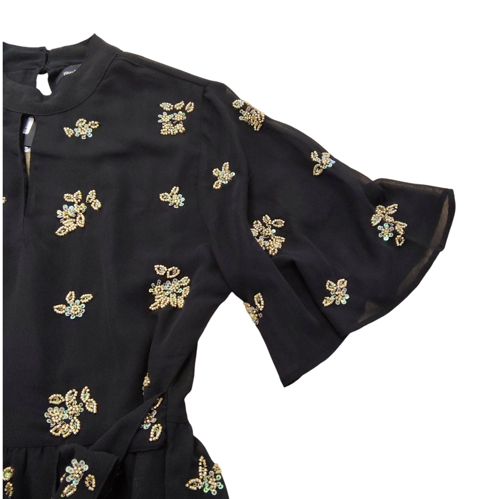 Rivers Island Floral Embroidered Dress UK6 Women's Black Short Sleeve Belted