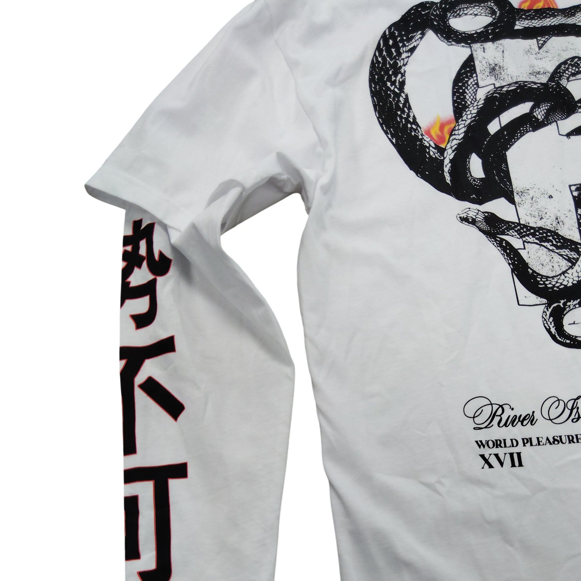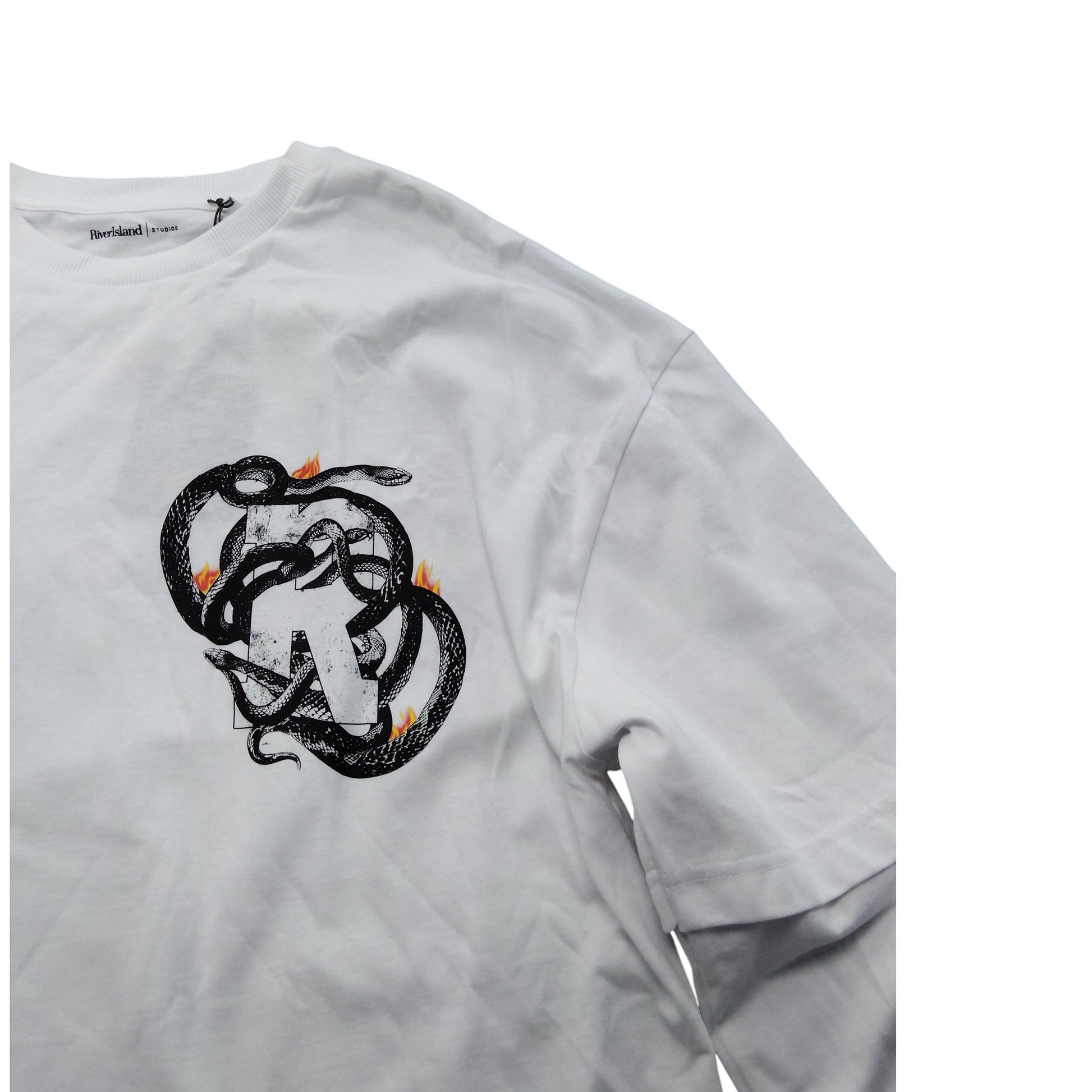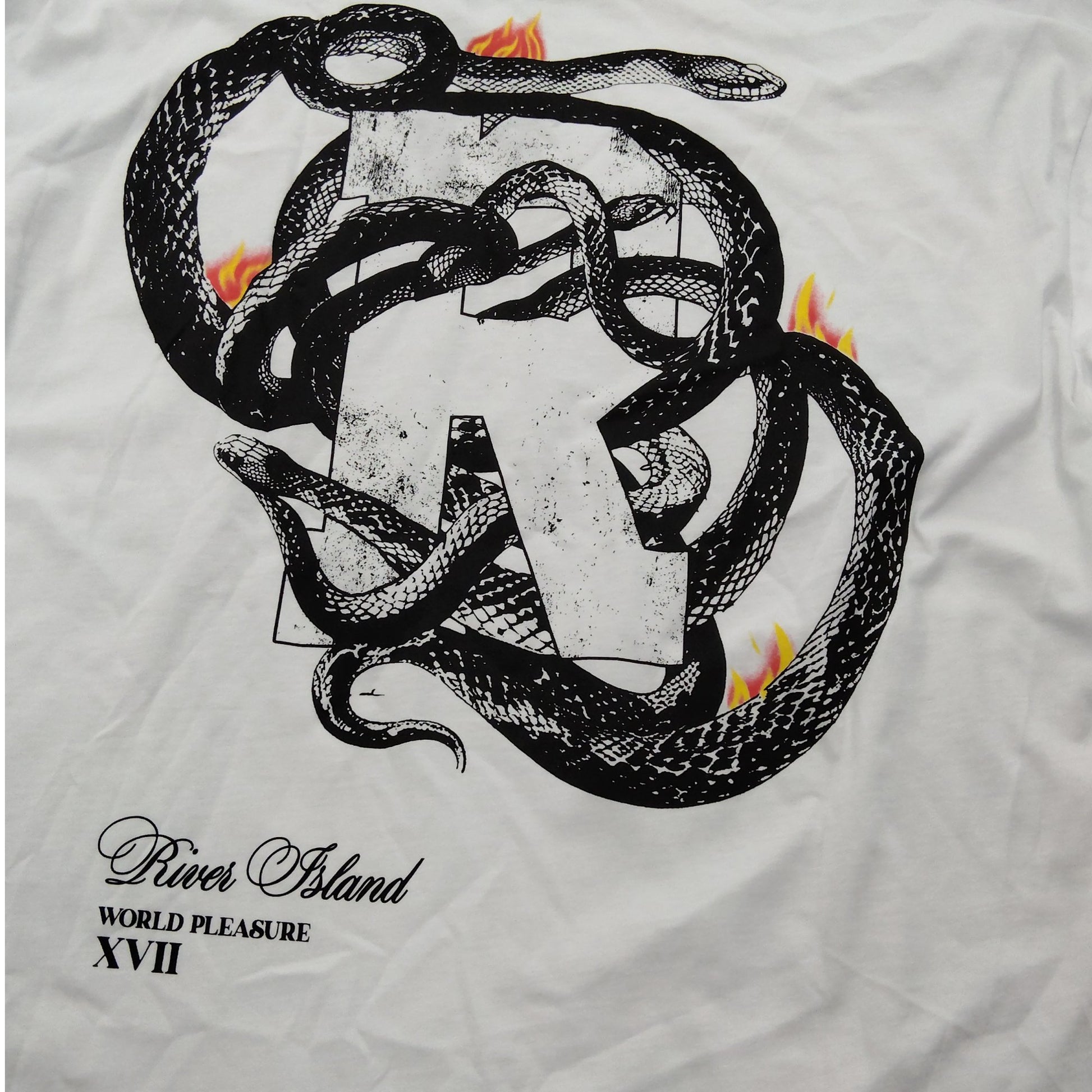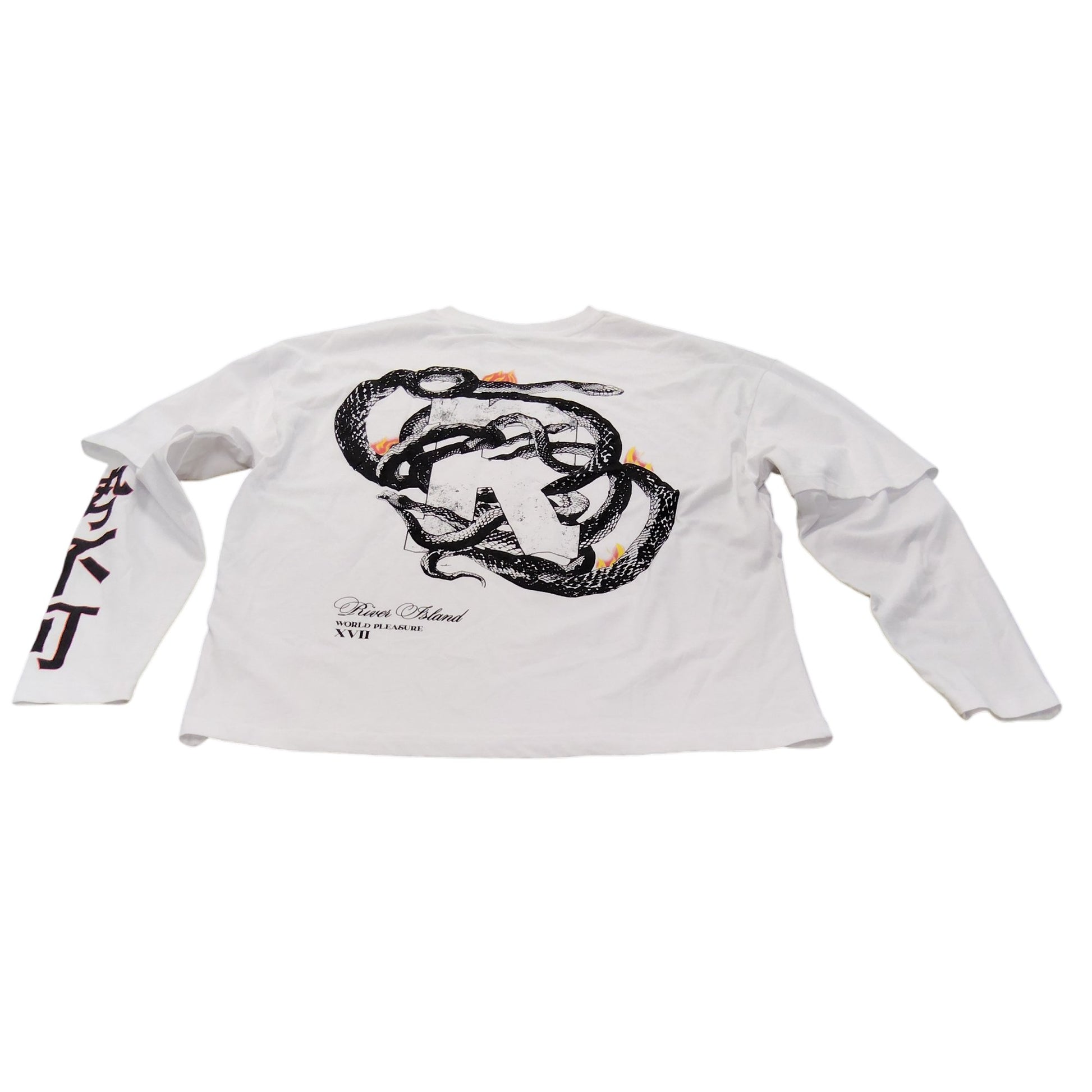 Rivers Island Long Sleeve Shirt UK M Women's Graphic Snake Print White Top
