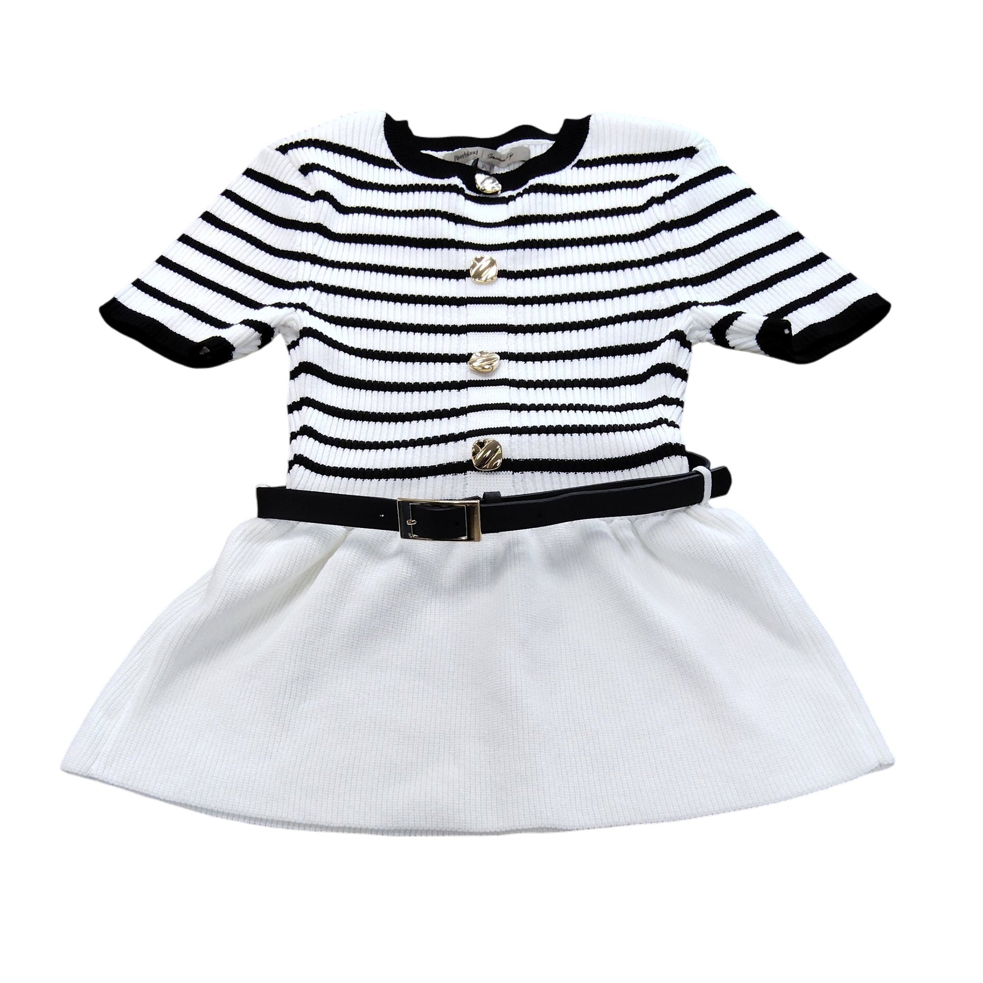 Rivers Island Striped Dress UK8 Women's Short Sleeve White Black Ribbed