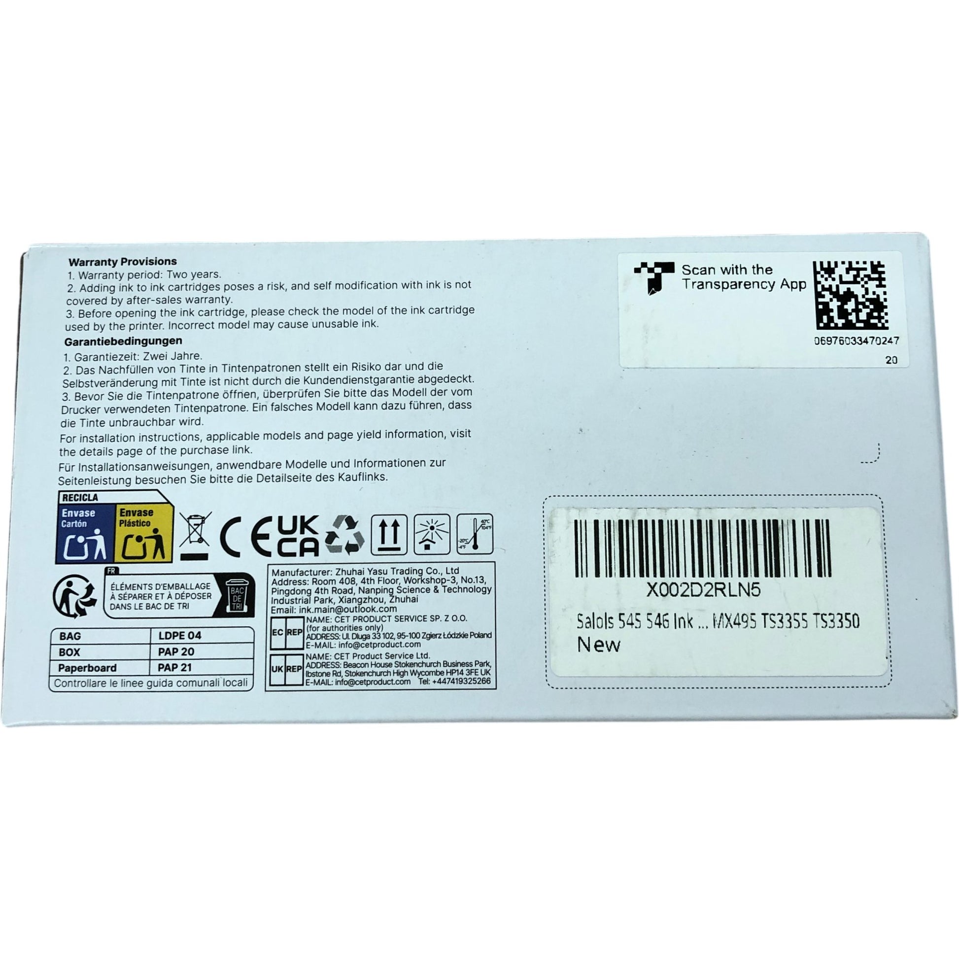 Salols 545XL 546XL Ink Cartridges Compatible Canon Black Colour Bundle