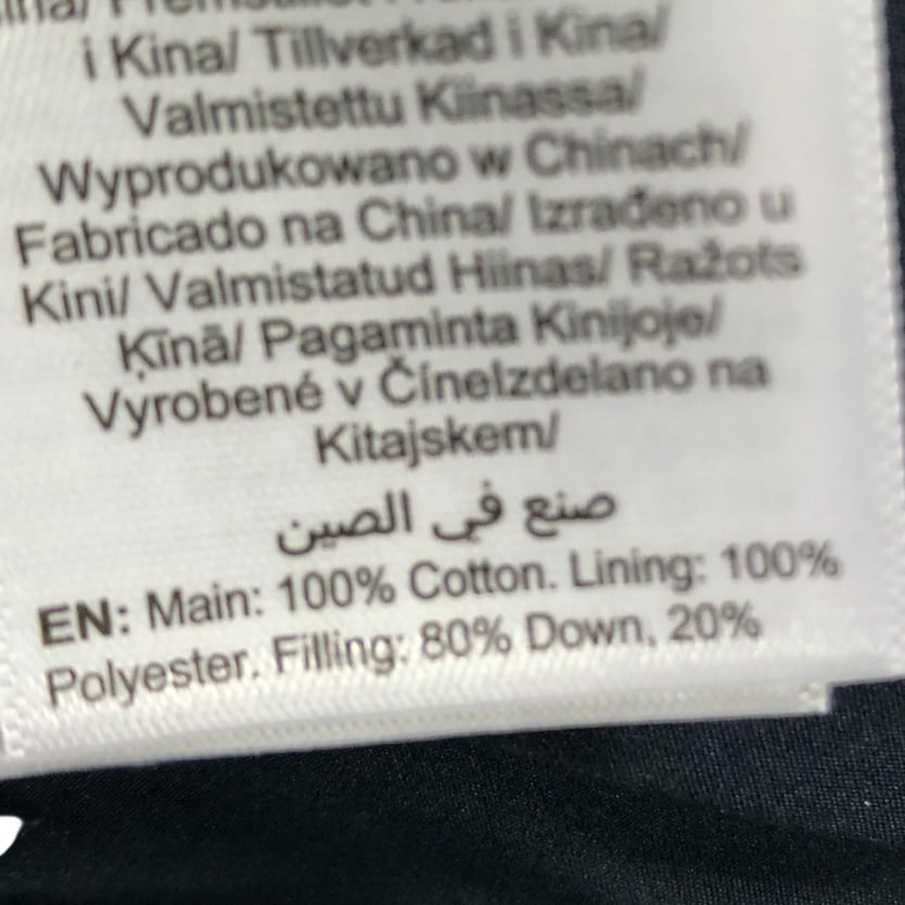 100% Cotton (Main Body); 100% Polyester (Lining); Filling: 80% Down, 20% Feather