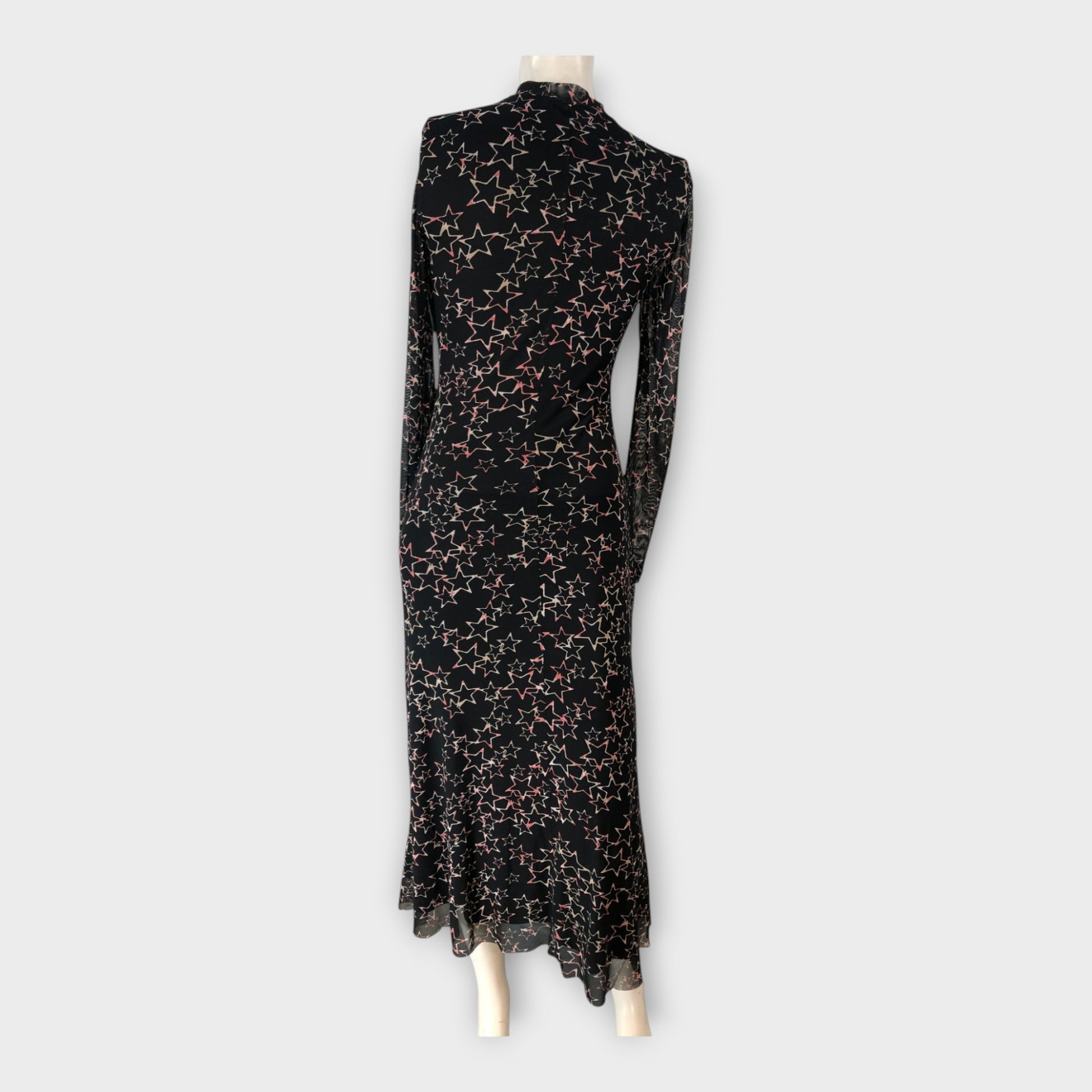 Elevate your evening wardrobe with this STAR PATTERN women's long dress featuring a sophisticated black mesh high neck design. The maxi length offers graceful coverage while the mesh detail adds a modern, elegant touch. Crafted to combine style and comfort, this dress is ideal for formal occasions where a refined silhouette and subtle statement are key.