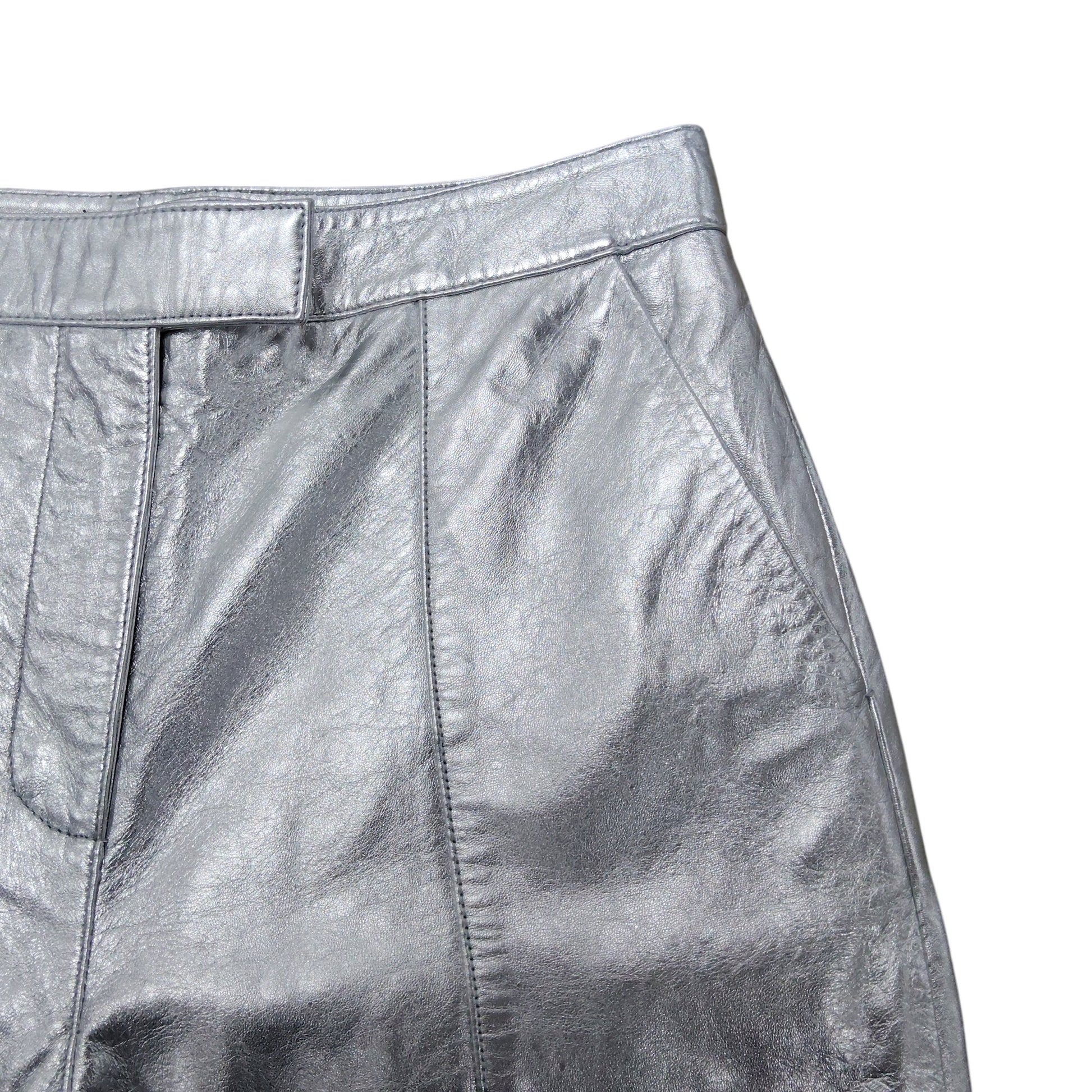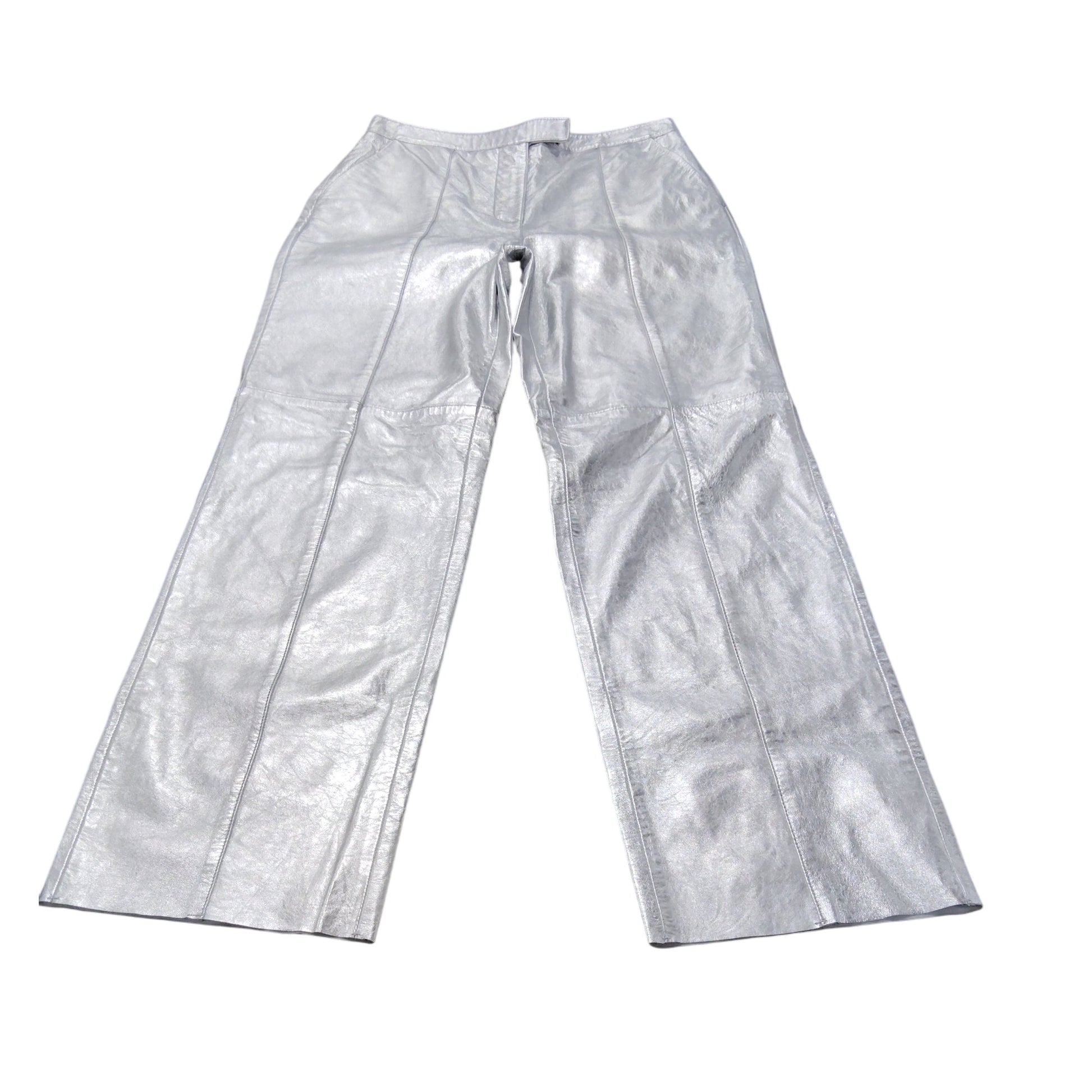 Stylish Metallic Silver Trousers UK12 Women's High Waist Flared Trousers