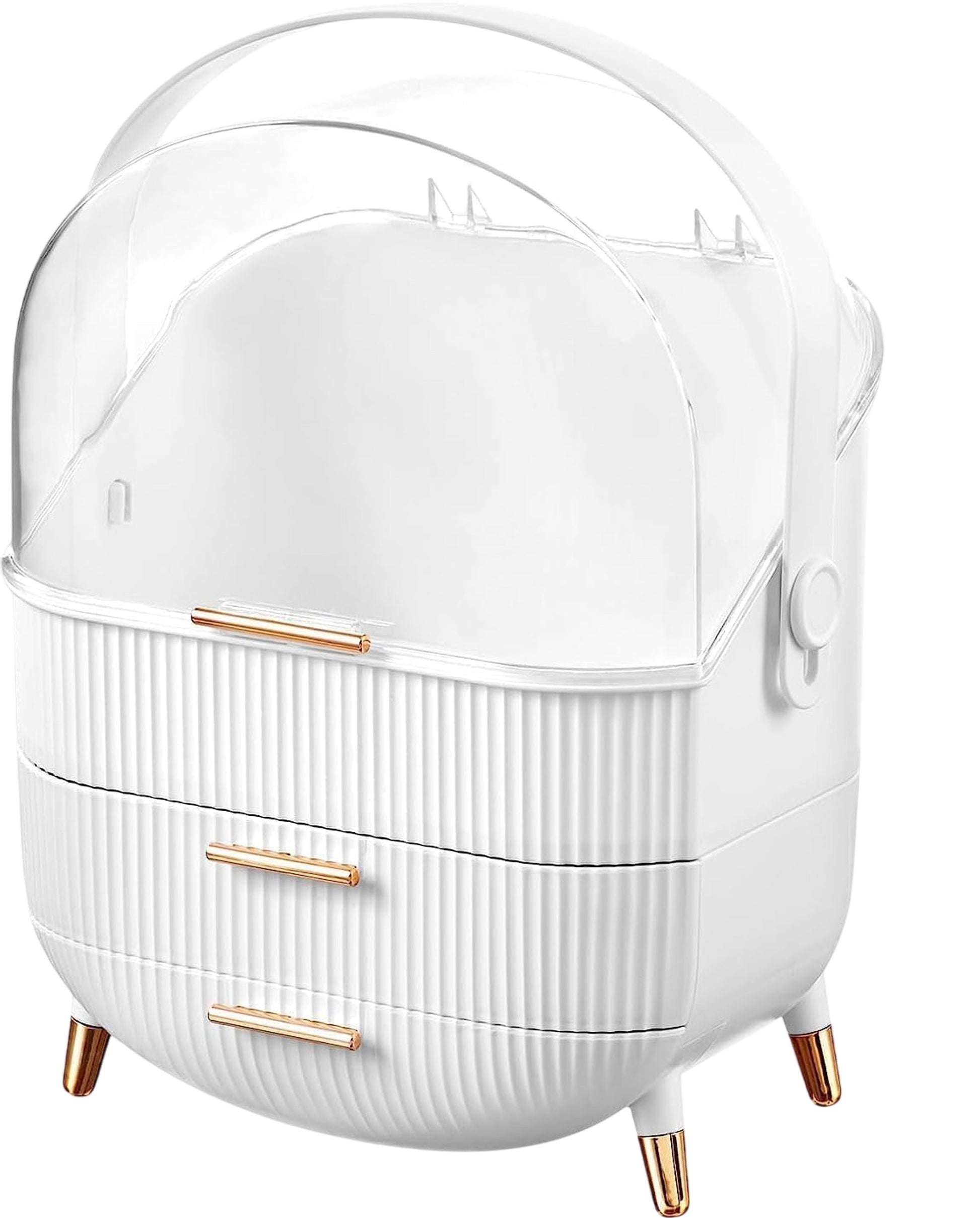 Stylish White Makeup Organizer Cosmetic Storage Box With Two Drawers
