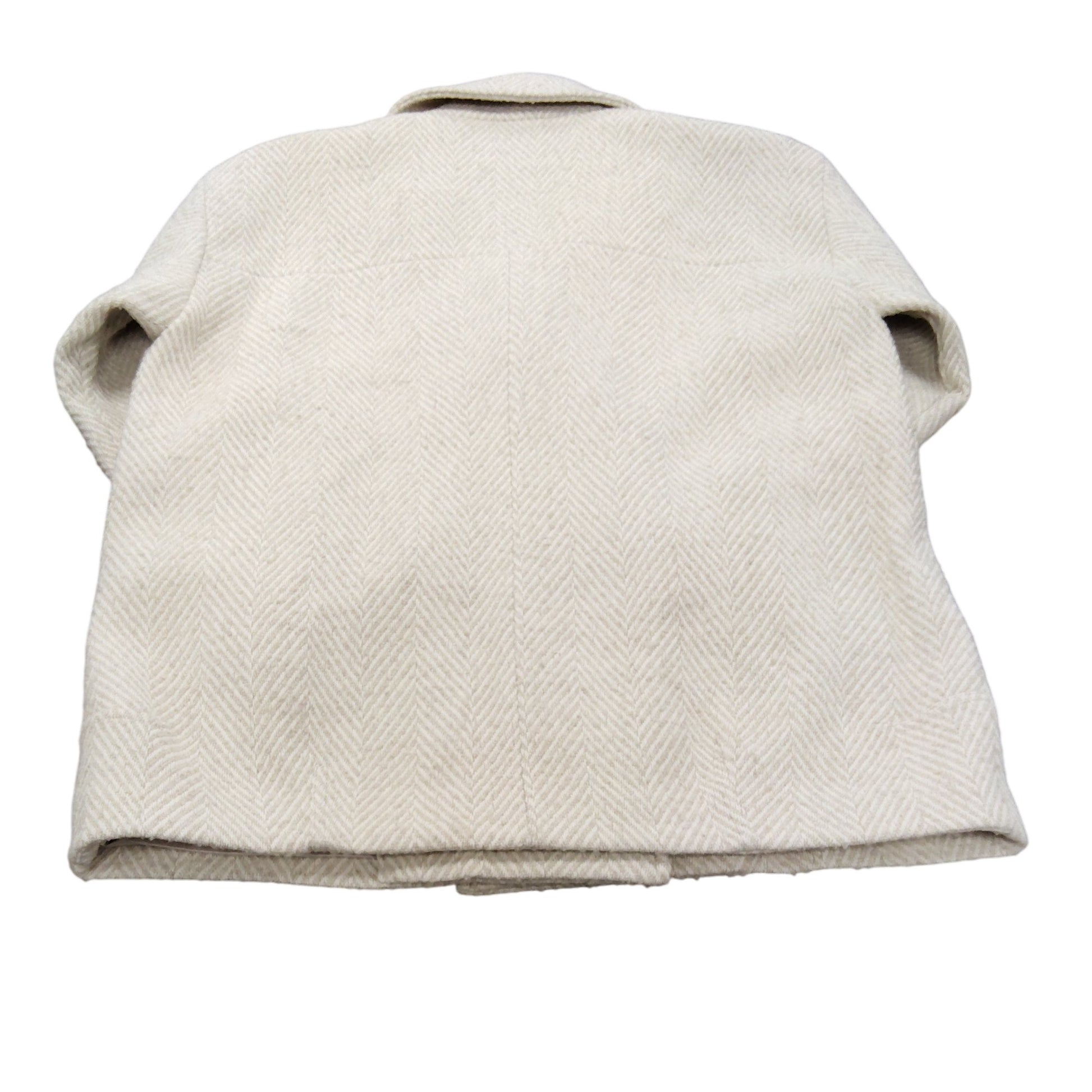 Stylish Women's Herringbone Coat Size L Warm Thick Outerwear Beige Jacket
