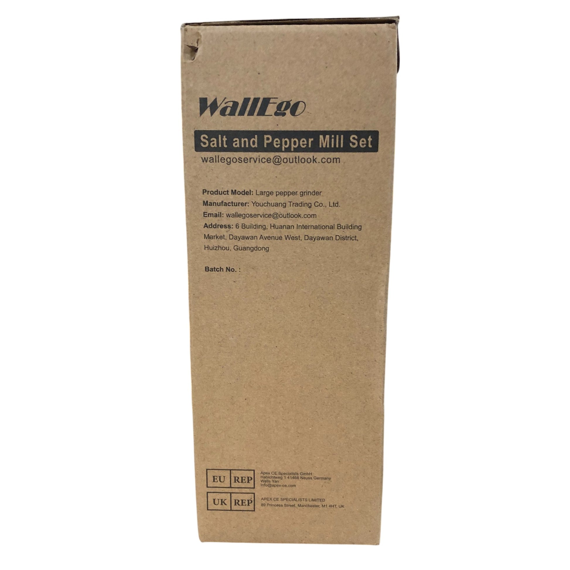 WallEgo Salt And Pepper Mill Set Adjustable Coarseness Glass And Stainless Steel