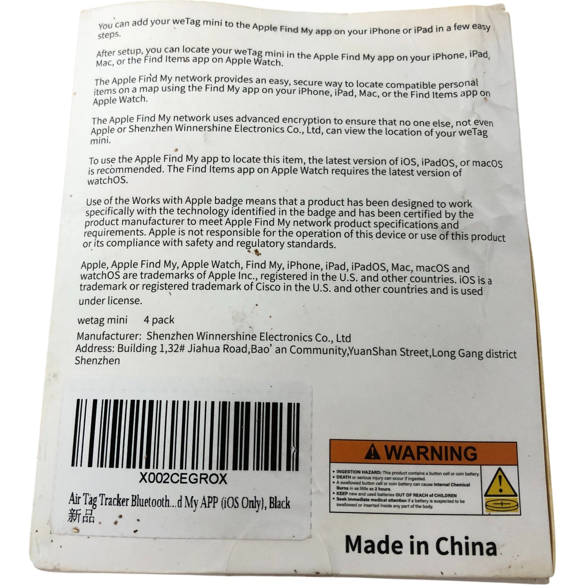 - Compatibility: Works with Apple Find My app