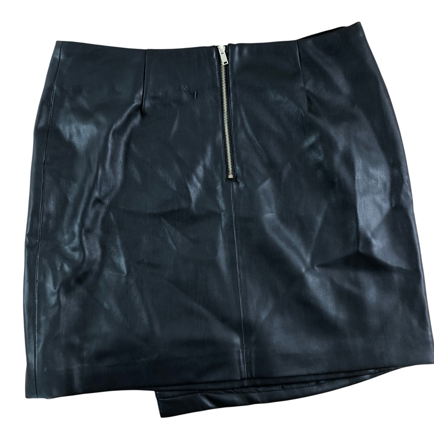 Women's Black Faux Leather Pencil Skirt Size 8 With Zip Detail Modern Style