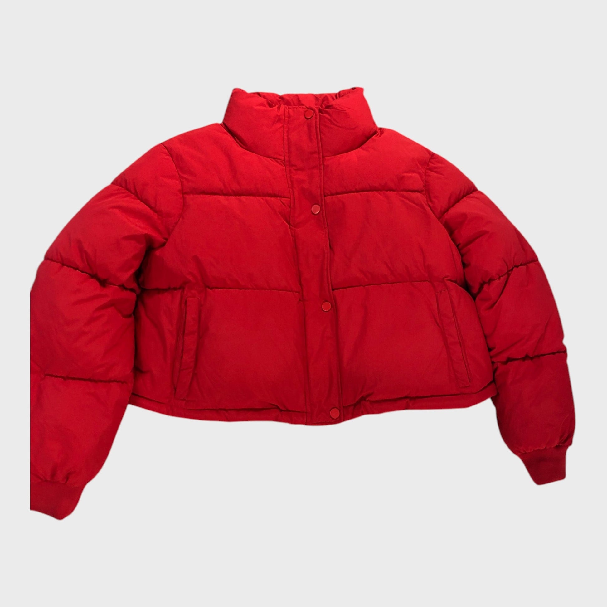 Women's Cropped Red Puffer Jacket Winter Coat
