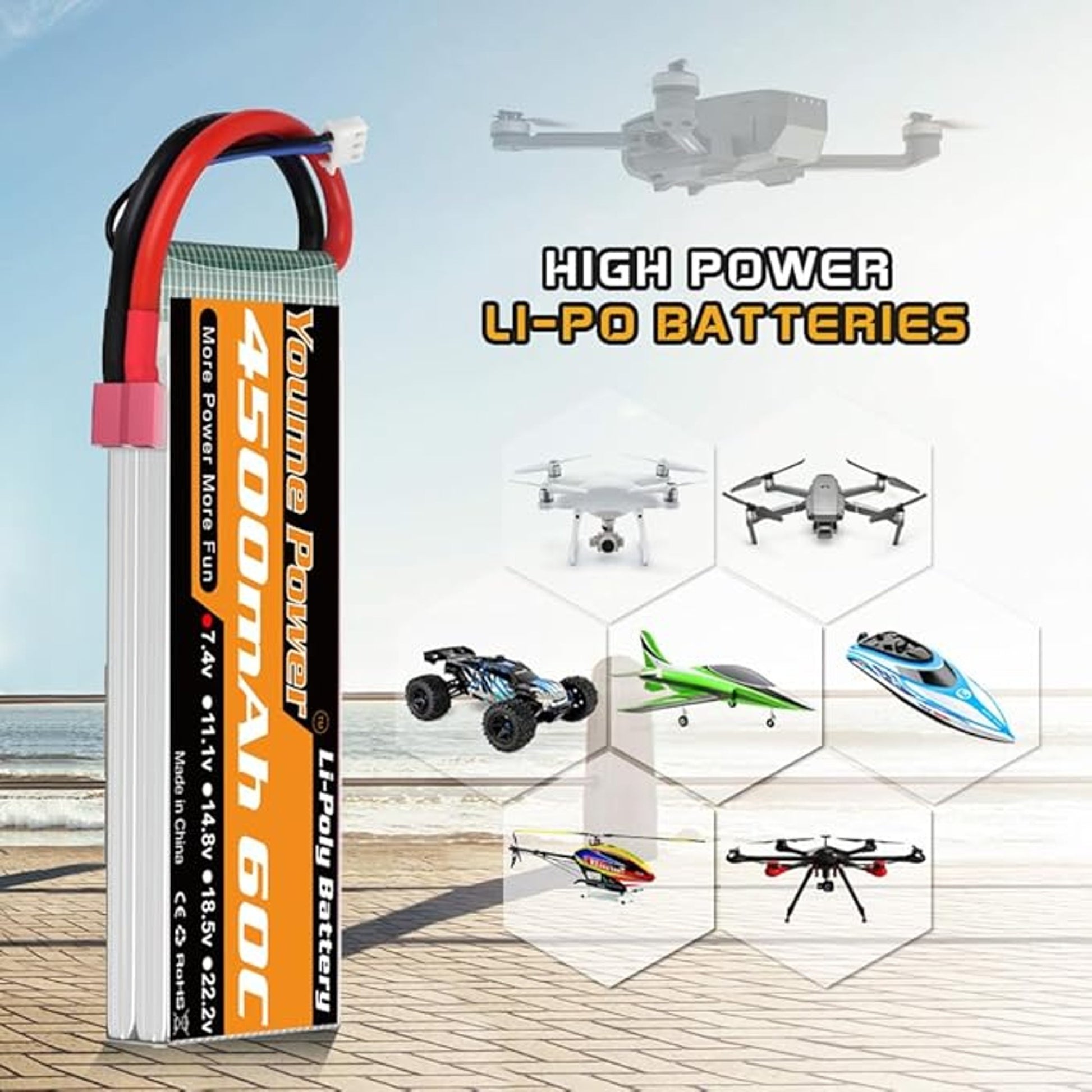 YOUME POWER 4500mAh 60C LiPo Battery High Voltage Compatible RC Models